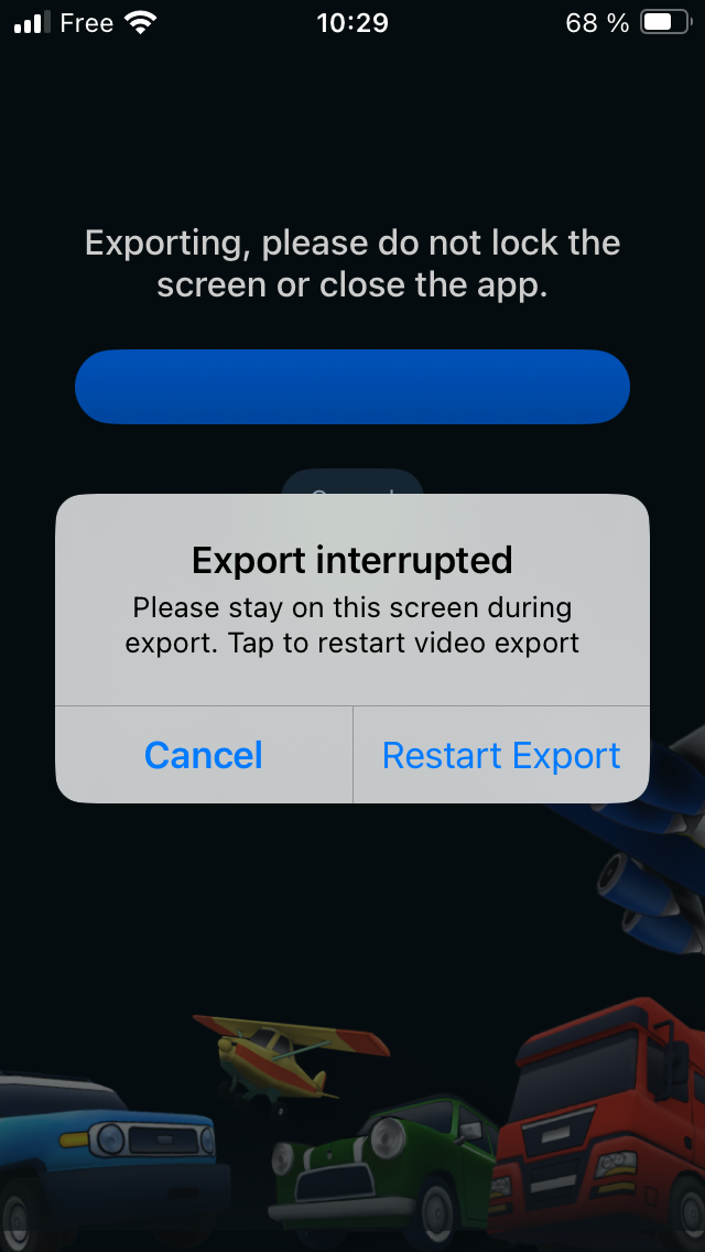 IPhone export interrupted